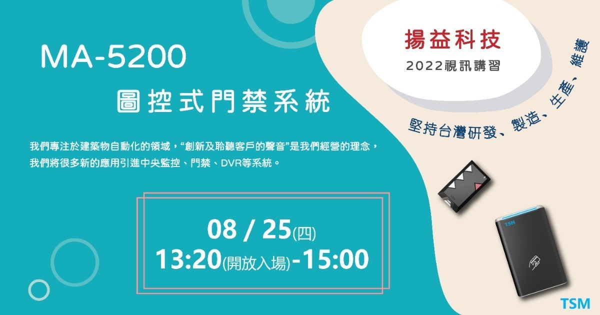 8/25 (四) 圖控式門禁系統MA-5200 視訊講習