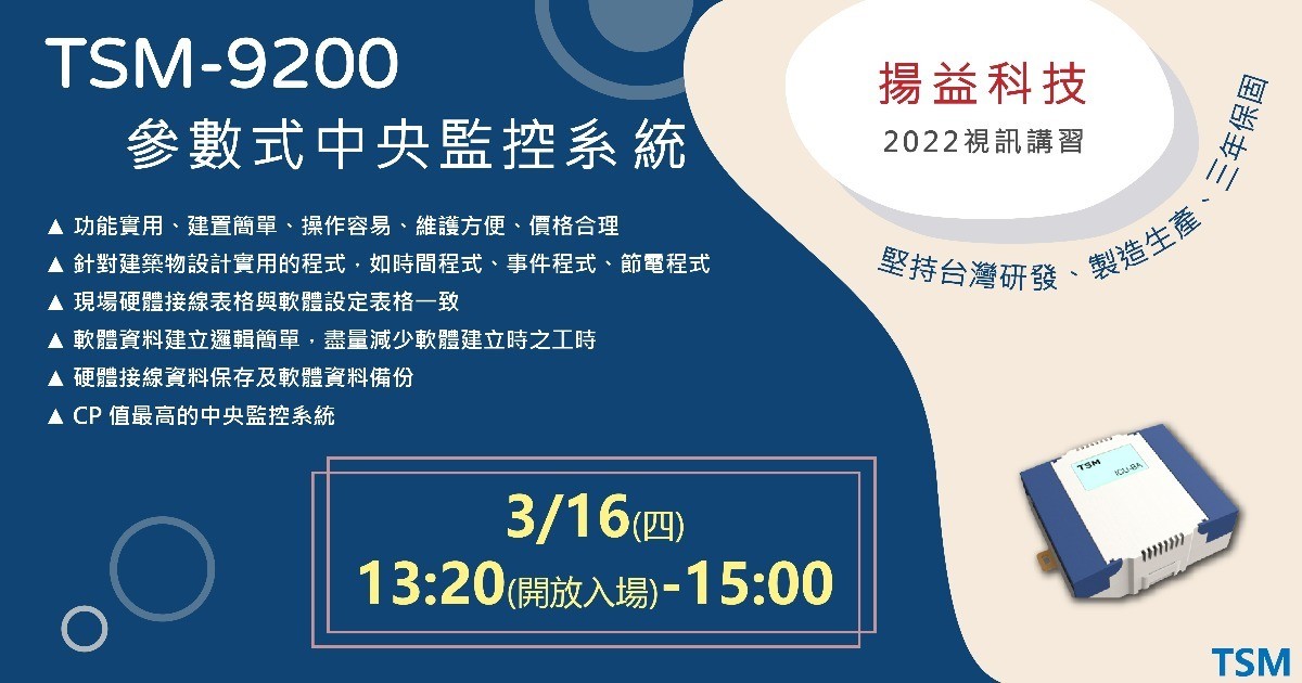 3/16 (四) TSM-9200 參數式中央監控系統 視訊講習