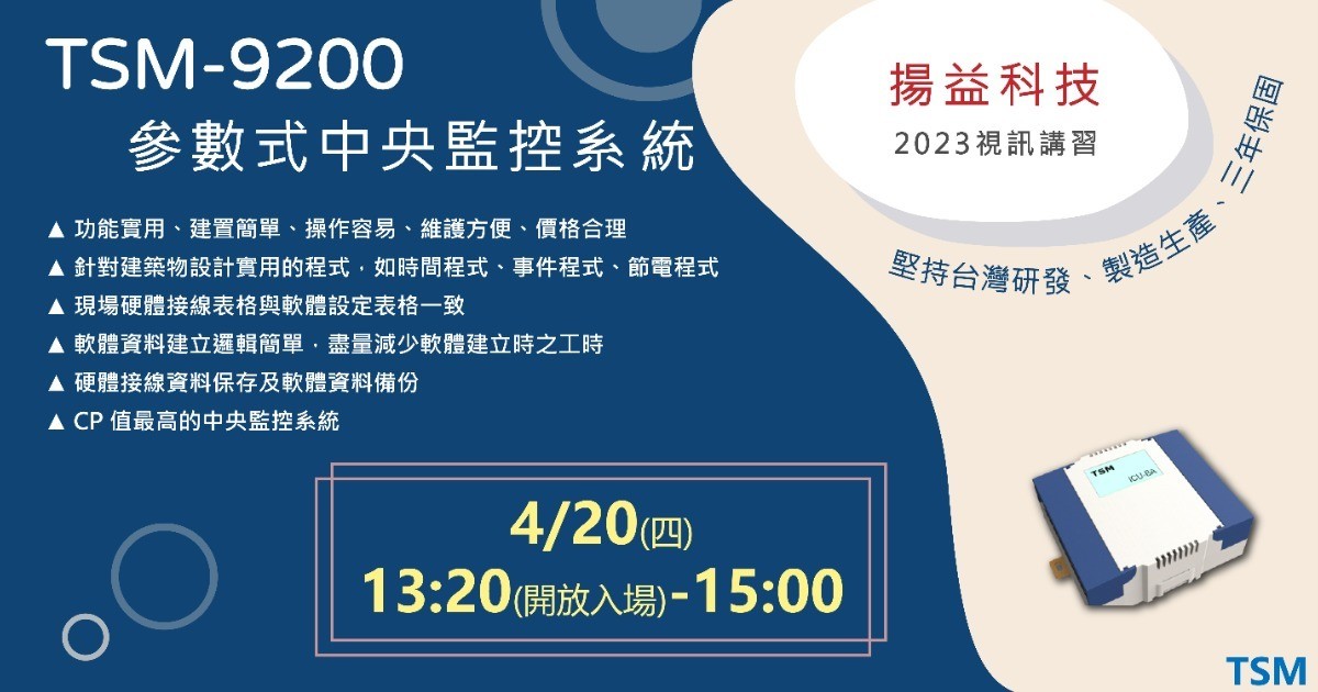 4/20 (四) TSM-9200 參數式中央監控系統 視訊講習